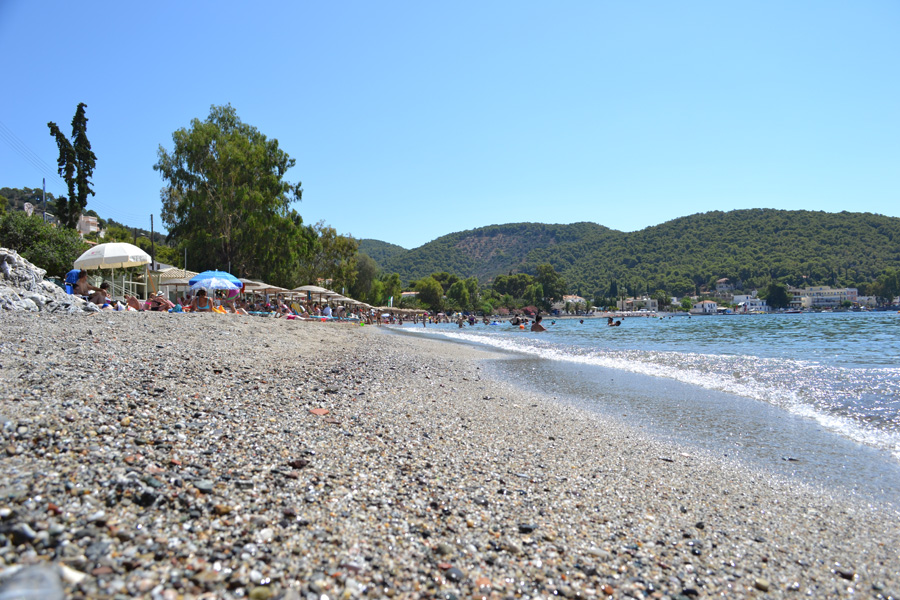 Askeli In this beach you can find umbrellas, deck chairs, bar, taverns and restaurants. There is also a tennis beach volley, and water sports. GPS: 37°30'30.8"N 23°28'05.7"E